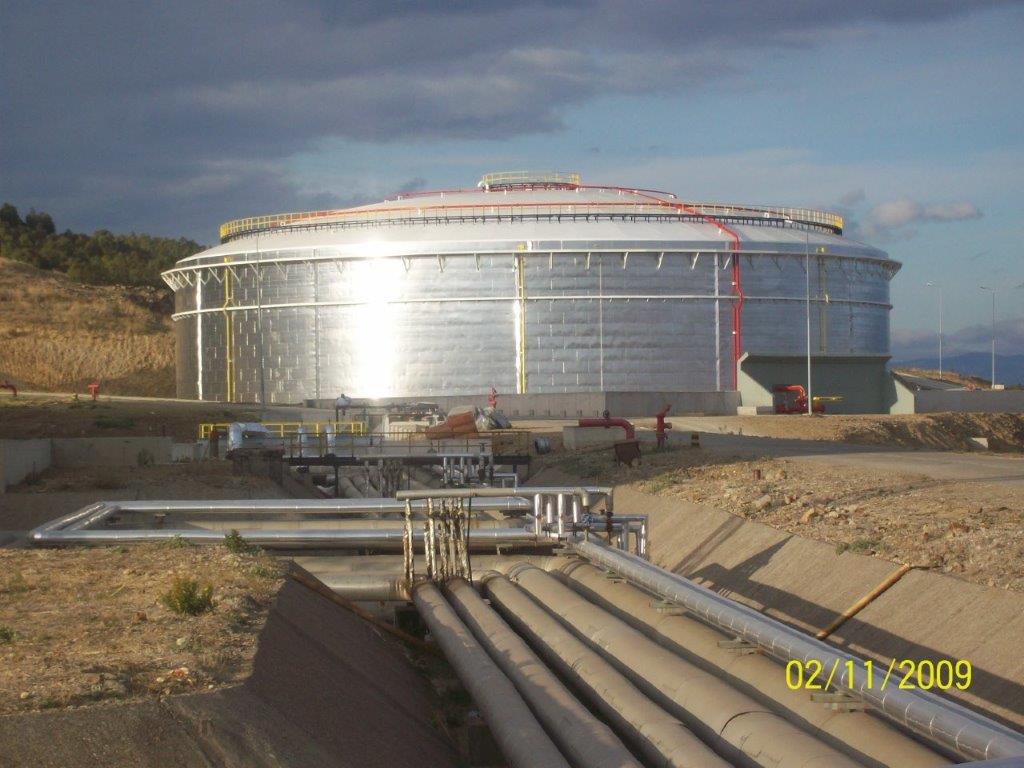 The 50.000m³ fuel oil tank (dome roof / without any roof columns with a diameterof 60.7meters) which is in TUPRAS Izmir Refinery were completed as per API 650.The project involved: